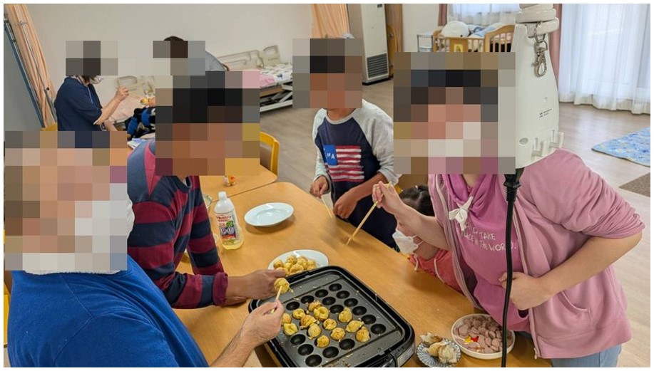 皆で分業しながら「生地をホットプレートに流し込む」、「長い楊枝でひっくり返す」といった2工程に取り組んでもらいました。