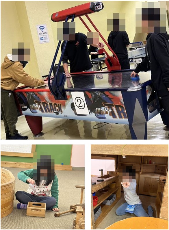 人気があるのは、ボルダリングや大型ブロック、木の温もりが感じられる木製遊具やトランポリン、エアホッケーや卓球です。